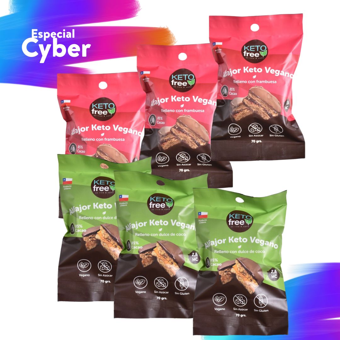 Disfruta 6 alfajores keto veganos con todo el sabor y textura que amas, sin azúcar, sin gluten y 100% veganos 🌿.